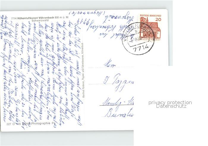 72217331 alte Postkarte Voehrenbach postalisch gelaufen Erhaltung siehe scans KatCode: 11110008326068