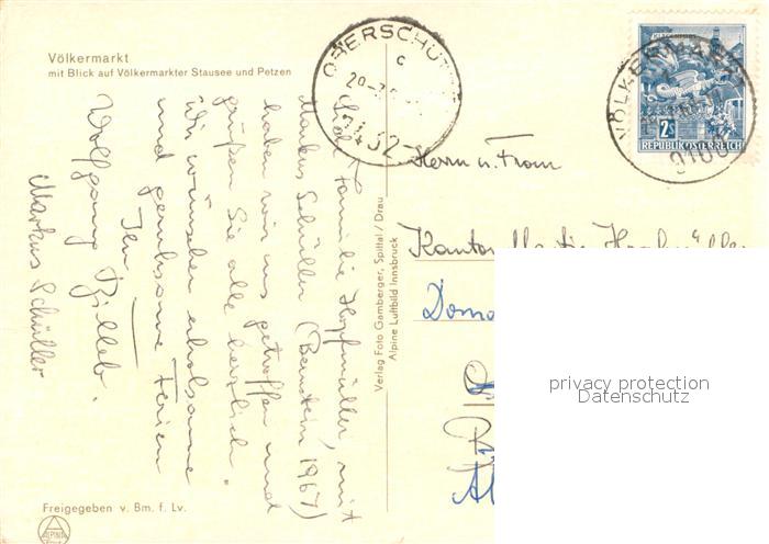 73707195 alte Postkarte Voelkermarkt Fliegeraufnahme mit Voelkermarkter Stausee und Petzen postalisch gelaufen Erhaltung siehe scans [WerneD78] KatCode: 11390213020817