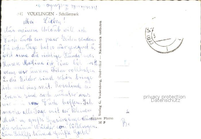 72146173 alte Postkarte Voelklingen Schillerpark postalisch gelaufen Erhaltung siehe scans KatCode: 11110010041519