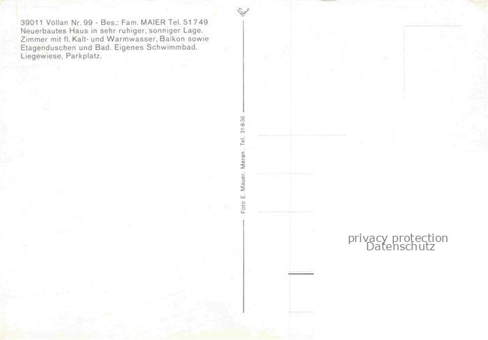 74084521 Voellan Foiana Lana MERANO IT Garni Neuhof Winterpartie Schwimmbad Gaststube postalisch nicht gelaufen Erhaltung siehe scans [WerneD78] KatCode: 11240
