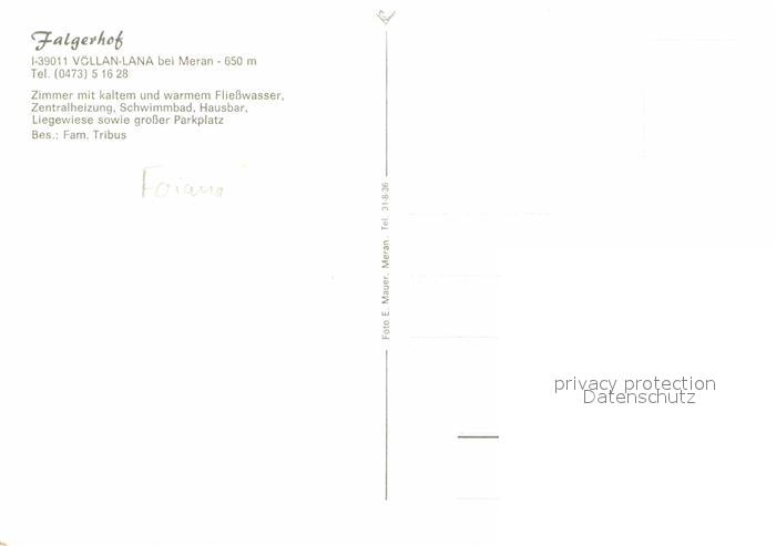 Voellan Lana Falgerhof Pension Gastraum postalisch nicht gelaufen Erhaltung siehe scans [FriedD77]