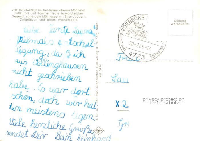 73785028 alte Postkarte Voellinghausen Moehnesee Neues Schloss – Altes Herrenhaus – Dorfansicht – Engelslit postalisch gelaufen Erhaltung siehe scans [LiesaD40] KatCode: 11110005974032