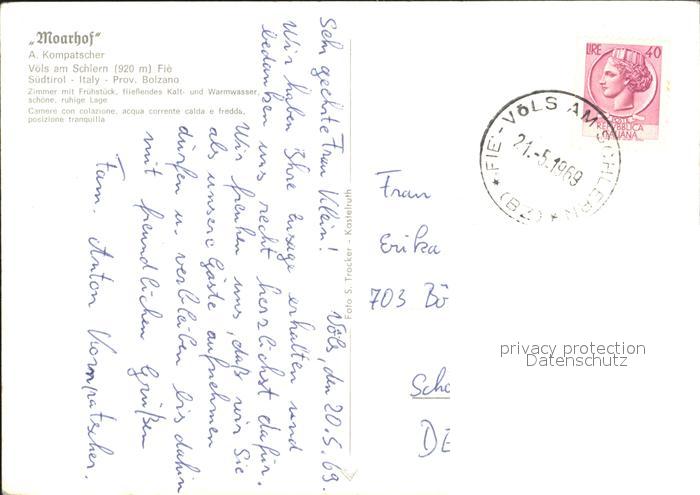 old postcard Voels Schlern Suedtirol Moarhof postalisch gelaufen Erhaltung siehe scans