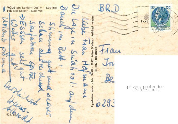 old postcard Voels Schlern Suedtirol Panorama Dolomiten postalisch gelaufen Erhaltung siehe scans [WerneD78]