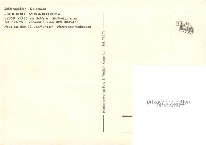Voels Schlern Suedtirol Schlerngebiet m. Garni Moarnhof Innen u. Aussen postalisch nicht gelaufen Erhaltung siehe scans [LiesaD40]