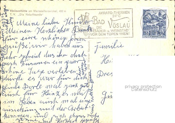 71822242 alte Postkarte Voeslau Oesterreich Voeslauerhuette am Mariazellerwinkel postalisch gelaufen Erhaltung siehe scans KatCode: 11390130090001