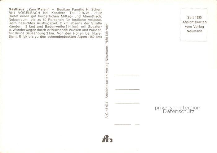 71830930 Vogelbach Malsburg-Marzell Gasthaus zum Maien postalisch nicht gelaufen Erhaltung siehe scans KatCode: 11110008336104