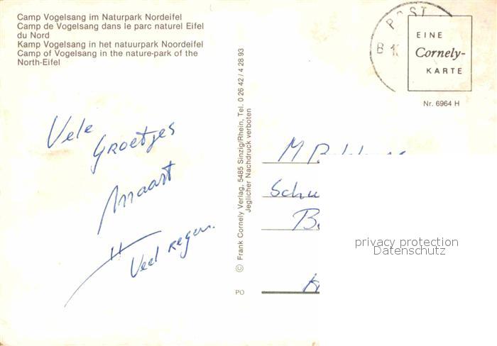 72872112 alte Postkarte Vogelsang Eifel Camp im Naturpark Nordeifel postalisch gelaufen Erhaltung siehe scans [LiesaD40] KatCode: 11110005366036