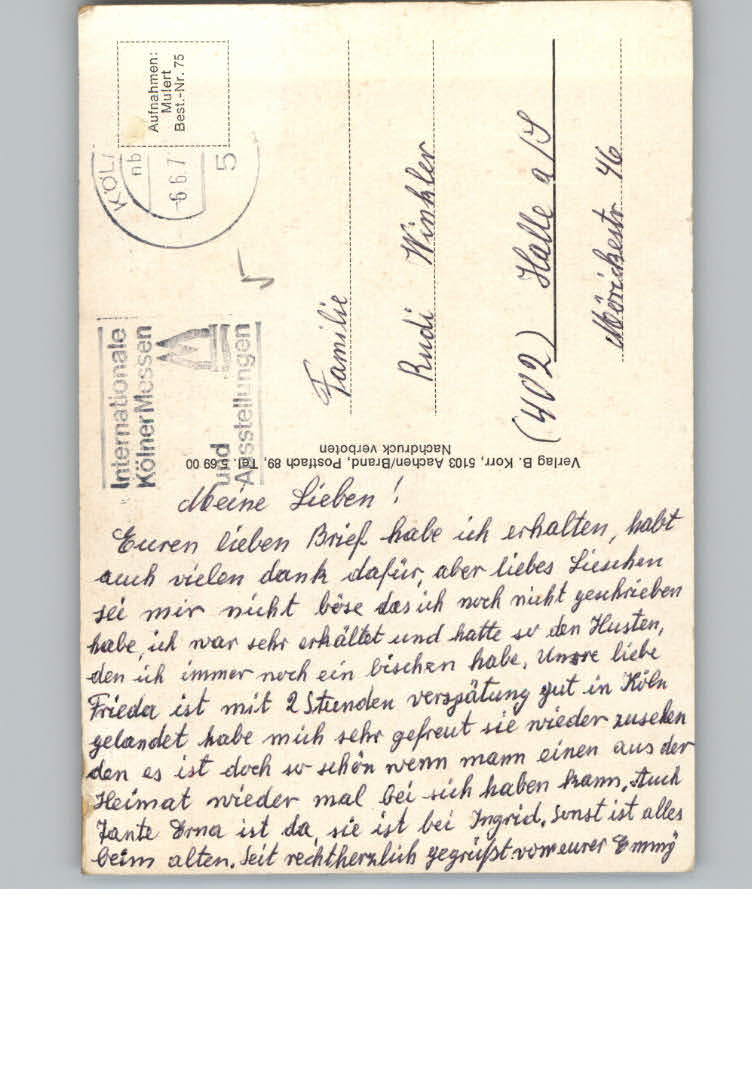 31136710 Vogelsang Koeln postalisch nicht gelaufen KatCode: 11110005315000