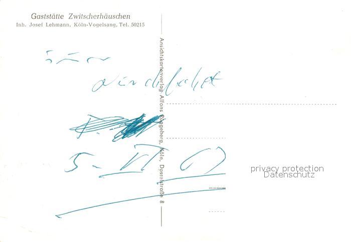 33154873 Vogelsang Koeln Gaststaette Zwitscherhaeuschen postalisch nicht gelaufen Erhaltung siehe scans [KathaD81] KatCode: 11110005315000