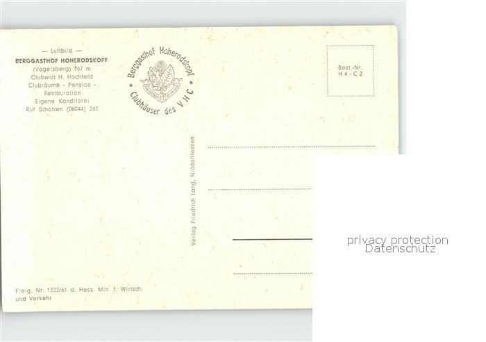 72015491 Vogelsberg Hessen Berggasthof Hoherodskopf Fliegeraufnahme postalisch nicht gelaufen KatCode: 11110006535016