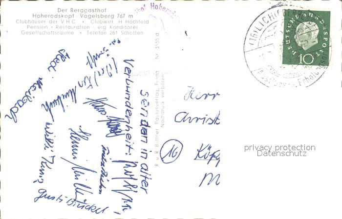 72122168 alte Postkarte Vogelsberg Hessen Hoherodskopf Berggasthof Bismarckturm Billstein Forellenteich postalisch gelaufen Erhaltung siehe scans KatCode: 11110006535016
