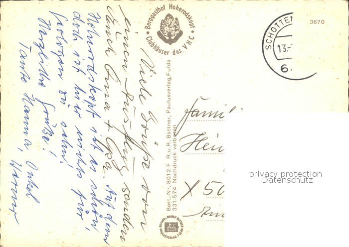 72557315 alte Postkarte Vogelsberg Hessen Hoherodskopf Taufstein VHC Clubhaeuser Jugendherberge postalisch gelaufen Erhaltung siehe scans [KathaD79] KatCode: 11110006535016