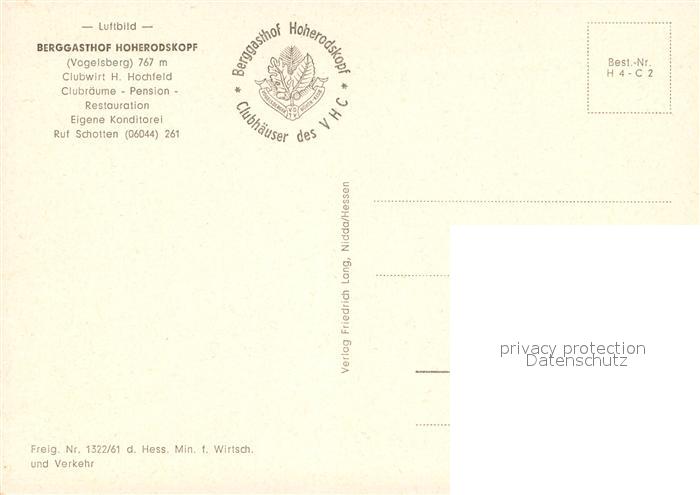 73718059 Vogelsberg Rhoen Berggasthof Hoherodskopf Fliegeraufnahme postalisch nicht gelaufen Erhaltung siehe scans [WerneD78] KatCode: 11110006535016