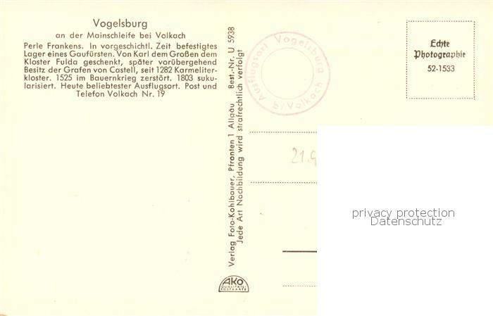 73809599 Vogelsburg Volkach Kloster und aeltestes Weingut Frankens postalisch nicht gelaufen Erhaltung siehe scans [WerneD78] KatCode: 11110009675174