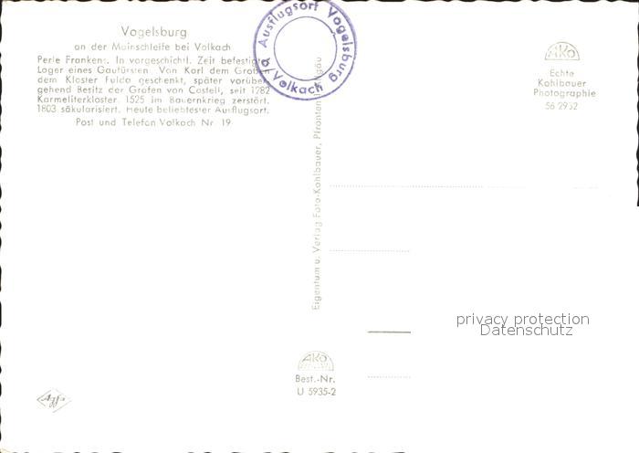 72299086 Vogelsburg Volkach Mit Lied postalisch nicht gelaufen Erhaltung siehe scans KatCode: 11110009675174