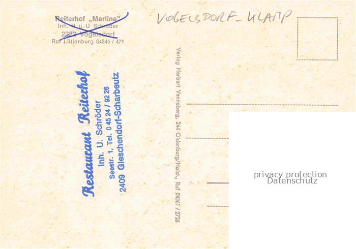 74110980 Vogelsdorf Klamp PLoeN Schleswig-Holstein Reiterhof Martina Gastraeume Teilansichten Teich postalisch nicht gelaufen Erhaltung siehe scans [WerneD78] KatCode: 11110001057035