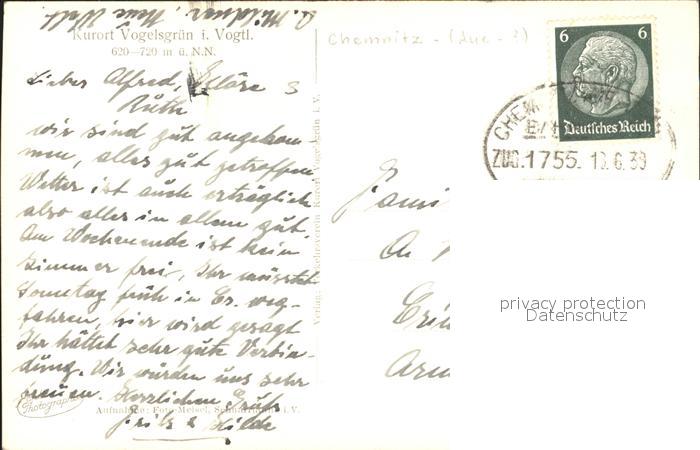 72311685 alte Postkarte Vogelsgruen Panorama Kurort Blick vom Waldrand aus Bahnpost postalisch gelaufen Erhaltung siehe scans KatCode: 11110014178030