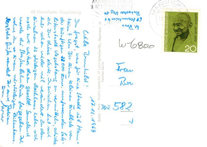 73896757 alte Postkarte Vogelstang Wohngruppen Hochhaus am Einkaufszentrum Pommernweg Strassenpartie postalisch gelaufen Erhaltung siehe scans [WerneD78] KatCode: 11110008222000