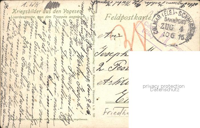 12325458 carte postale Vogesen Vosges Region krigsbilder aus den vogesen lourdesgrotte von den Truppen angelegt Friedhof postalisch gelaufen Feldpost Erhaltung siehe scans KatCode: 11170088388196