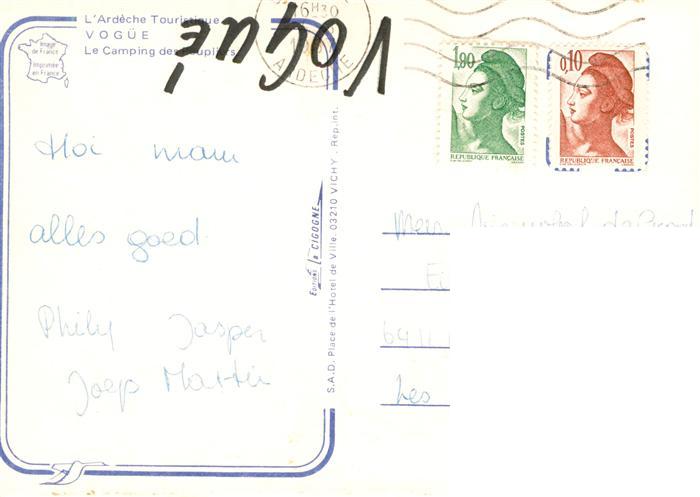 13942677 Vogue 07 Ardeche Le Camping des Peupliers postalisch gelaufen Erhaltung siehe scans [FriedD77] carte postale Frie Katcode 11170007107348