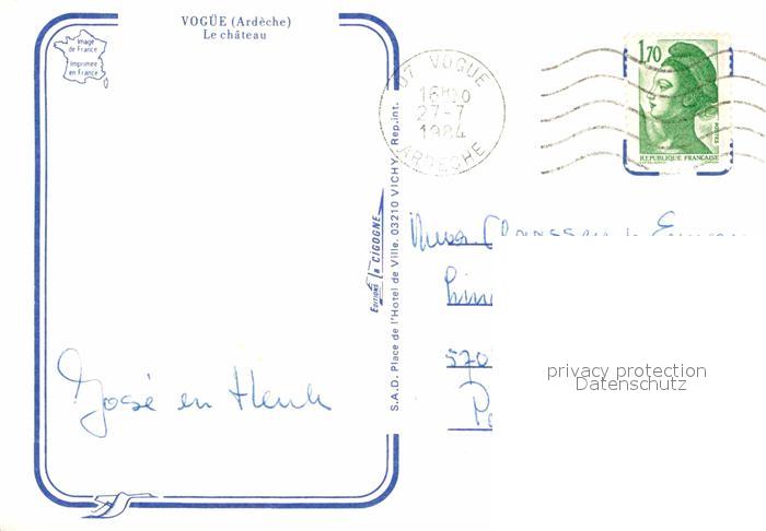 12826115 carte postale Vogue Chàteau postalisch gelaufen Erhaltung siehe scans [AndreD76] KatCode: 11170007107348