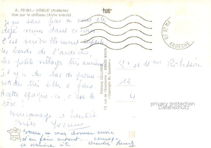 carte postale Vogue Vur sur le Chateau XVIe siècle postalisch gelaufen Erhaltung siehe scans [FriedD77]