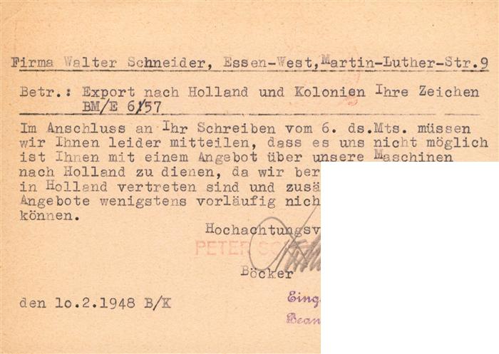 73916280 Vohwinkel Wuppertal Maschinenfabrik Schumacher Antwortkarte postalisch gelaufen Erhaltung siehe scans [FriedD77] alte Postkarte Frie Katcode 11110005124000