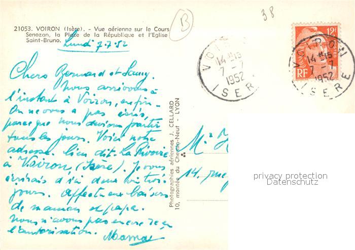 13536130 carte postale Voiron Cours Senozan Place de la République Eglise Saint Bruno vue aérienne postalisch gelaufen Erhaltung siehe scans [FriedD77] KatCode: 11170038138563