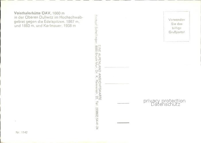 72500323 Voisthalerhuette Hochschwabgebiet Edelspitzen Karlmauer postalisch nicht gelaufen Erhaltung siehe scans KatCode: 11390223061311