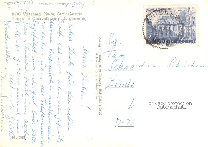 73630343 alte Postkarte Voitsberg Steiermark Fliegeraufnahme Burgruine Obervoitsberg Ortsmotiv postalisch gelaufen Erhaltung siehe scans [WerneD78] KatCode: 11390225061625