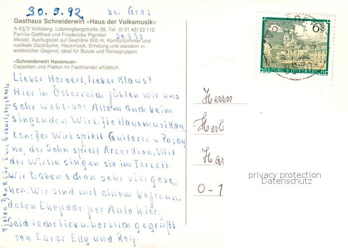 73222060 alte Postkarte Voitsberg Steiermark Gasthaus Schneiderwirt Haus der Volksmusik postalisch gelaufen Erhaltung siehe scans [KathaD81] KatCode: 11390225061625