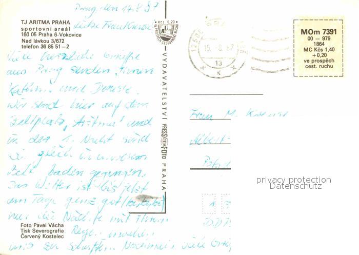 old postcard Vokovice TJ Aritma Praha postalisch gelaufen Erhaltung siehe scans [FriedD77]