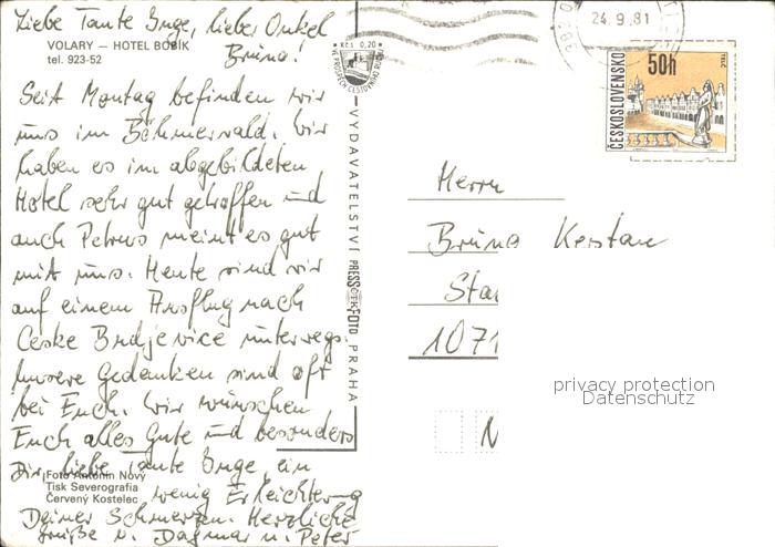 old postcard Volary Hotel Bobik Gastraeume Zimmer postalisch gelaufen Erhaltung siehe scans
