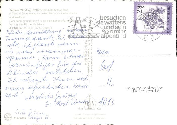 72479990 alte Postkarte Volders Pension Windegg postalisch gelaufen Erhaltung siehe scans KatCode: 11390332070365