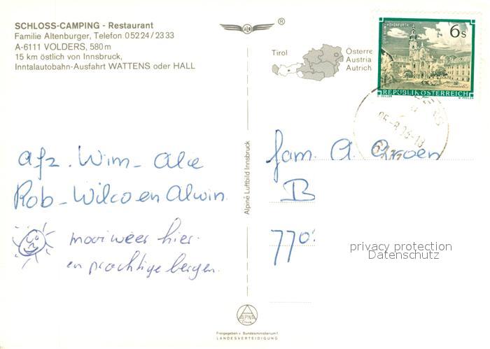 73073876 alte Postkarte Volders Schloss Camping Kirche Restaurant Fliegeraufnahme postalisch gelaufen Erhaltung siehe scans [WerneD78] KatCode: 11390332070365