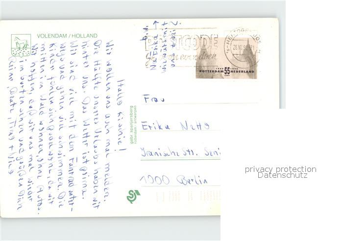 old postcard Volendam Alter Mann postalisch gelaufen Erhaltung siehe scans