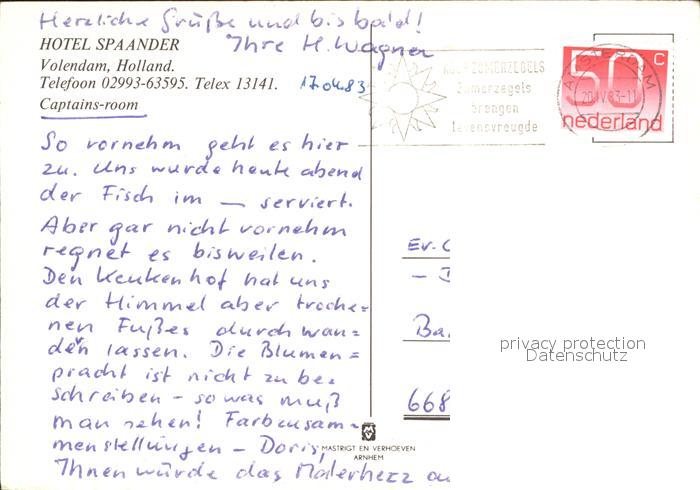 old postcard Volendam Hotel Spaander Captains-room postalisch gelaufen Erhaltung siehe scans