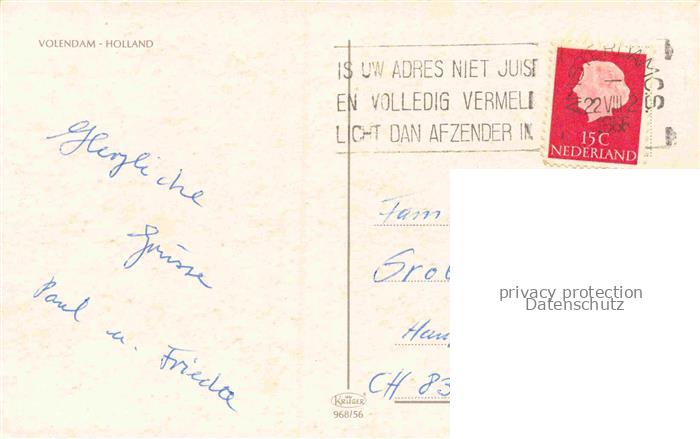 74117856 old postcard VOLENDAM NL Faehre postalisch gelaufen Erhaltung siehe scans [WerneD78] KatCode: 11370