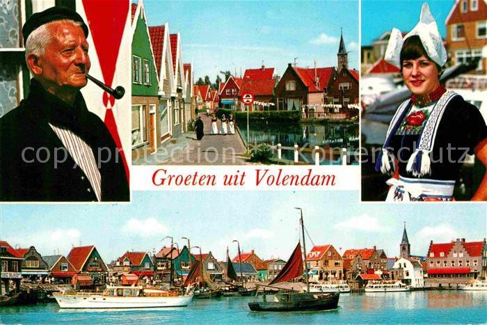 Volendam Ortsansichten Alter Mann Trachten Hafen postalisch nicht gelaufen Erhaltung siehe scans [FriedD77]