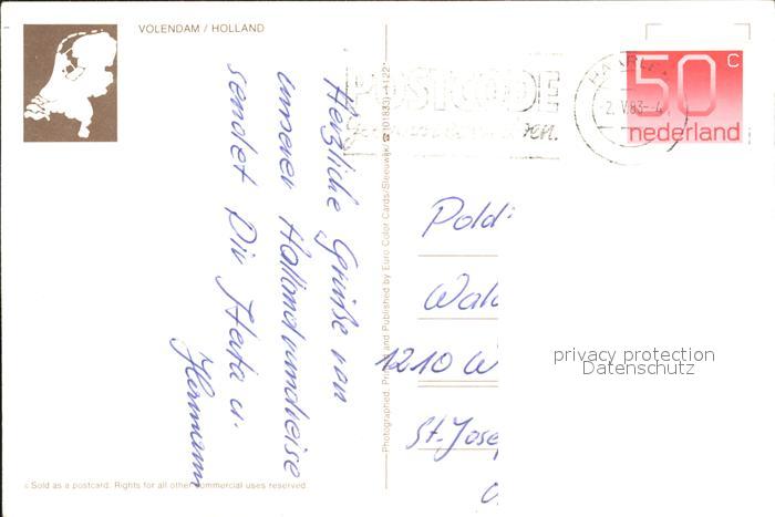 old postcard Volendam Tracht Hafen postalisch gelaufen Erhaltung siehe scans