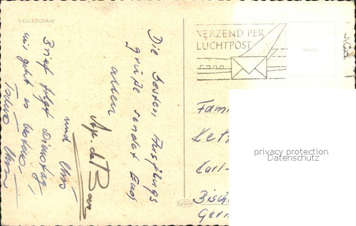old postcard Volendam Uferstrasse Hafen postalisch gelaufen Erhaltung siehe scans