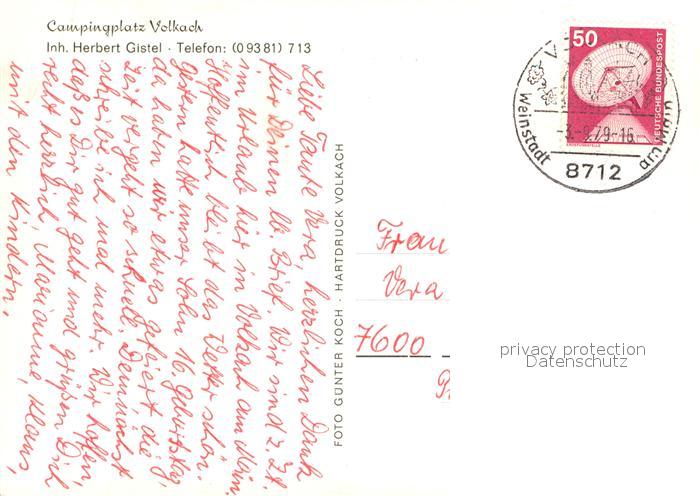 73645524 alte Postkarte Volkach Campingplatz Teilansichten postalisch gelaufen Erhaltung siehe scans [WerneD78] KatCode: 11110009675174