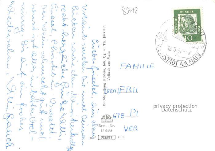74054395 alte Postkarte Volkach Diebenenturm Wallfahrtskirche St Maria auf dem Kirchberg Panorama Rathaus Brunnen Vogelsburg postalisch gelaufen Erhaltung siehe scans [WerneD78] KatCode: 11110009675174