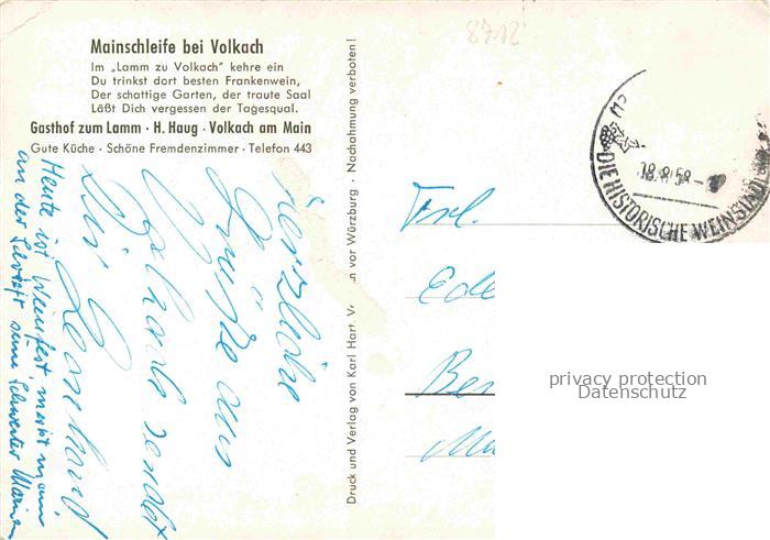 74054359 alte Postkarte Volkach Fliegeraufnahme mit Mainschleife postalisch gelaufen Erhaltung siehe scans [WerneD78] KatCode: 11110009675174