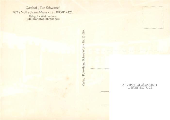 73684243 Volkach Gasthaus zur Schwane postalisch nicht gelaufen Erhaltung siehe scans [LiesaD40] KatCode: 11110009675174