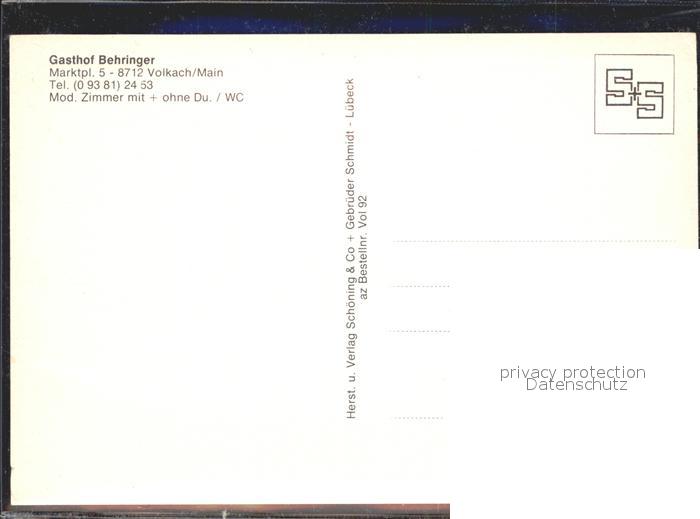 72151217 Volkach Gasthof Behriner postalisch nicht gelaufen Erhaltung siehe scans KatCode: 11110009675174