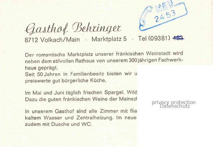 74054362 Volkach Gasthof Behringer Rathaus postalisch nicht gelaufen Werbekarte (keine Postkarte) Erhaltung siehe scans [WerneD78] KatCode: 11110009675174