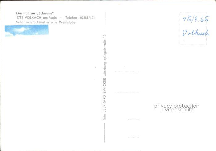 72611776 Volkach Gasthof zur Schwane postalisch nicht gelaufen Erhaltung siehe scans [AndreD76] KatCode: 11110009675174