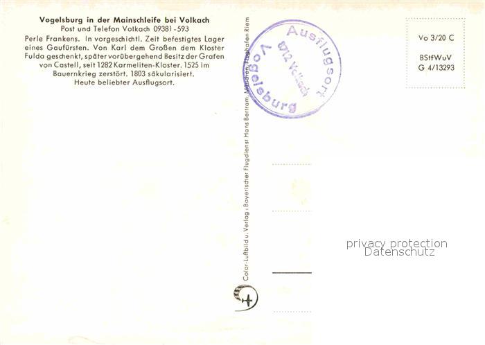 72885495 Volkach Kloster Vogelsburg Mainschleife Fliegeraufnahme postalisch nicht gelaufen Erhaltung siehe scans [FriedD77] KatCode: 11110009675174